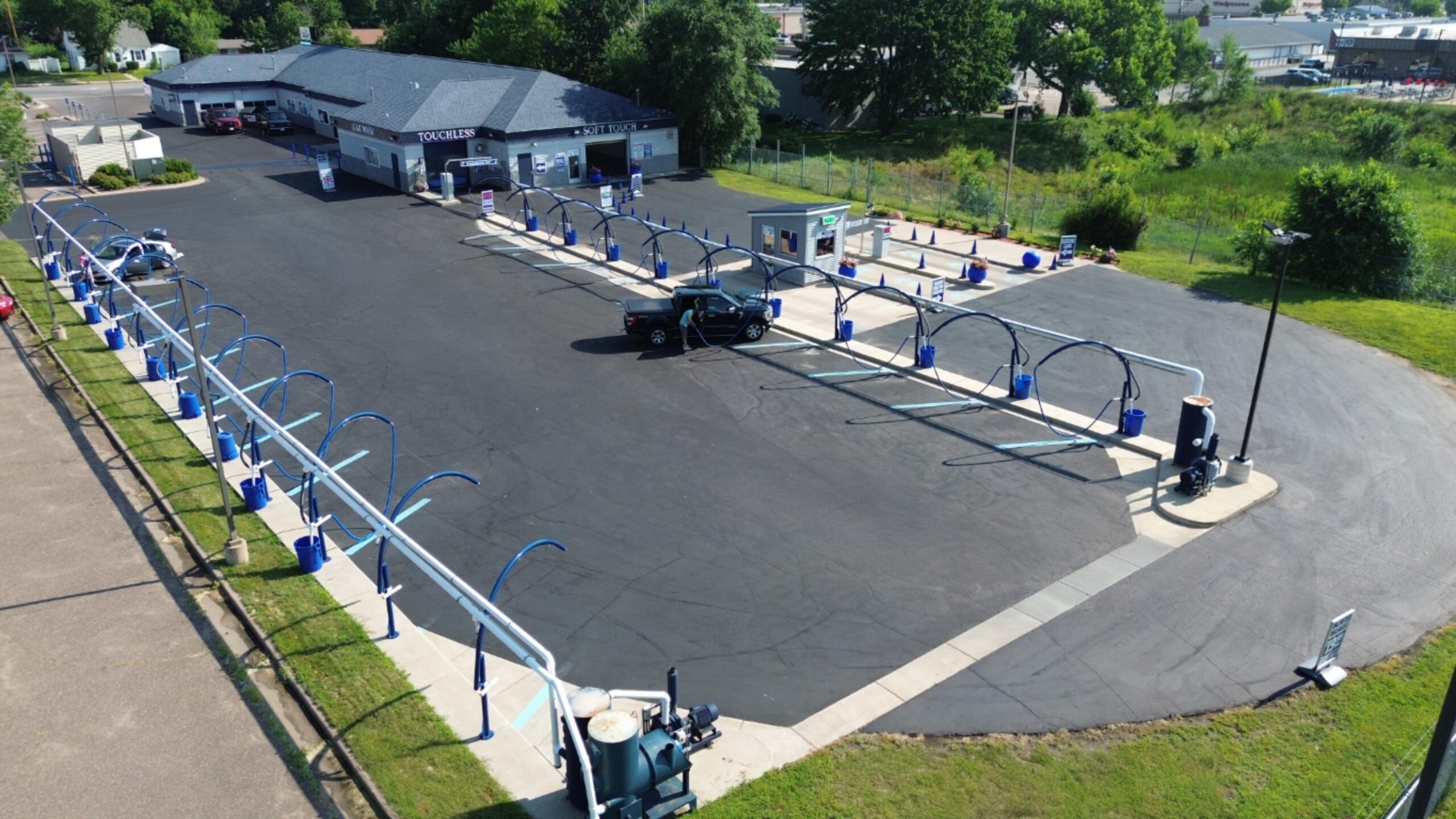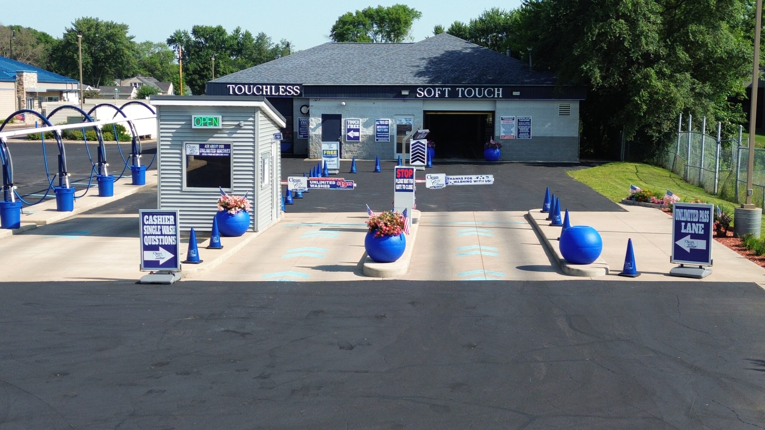 This is a nice, efficient car wash. You choose your wash with touchless or without the flappy cleaner cloths wash.