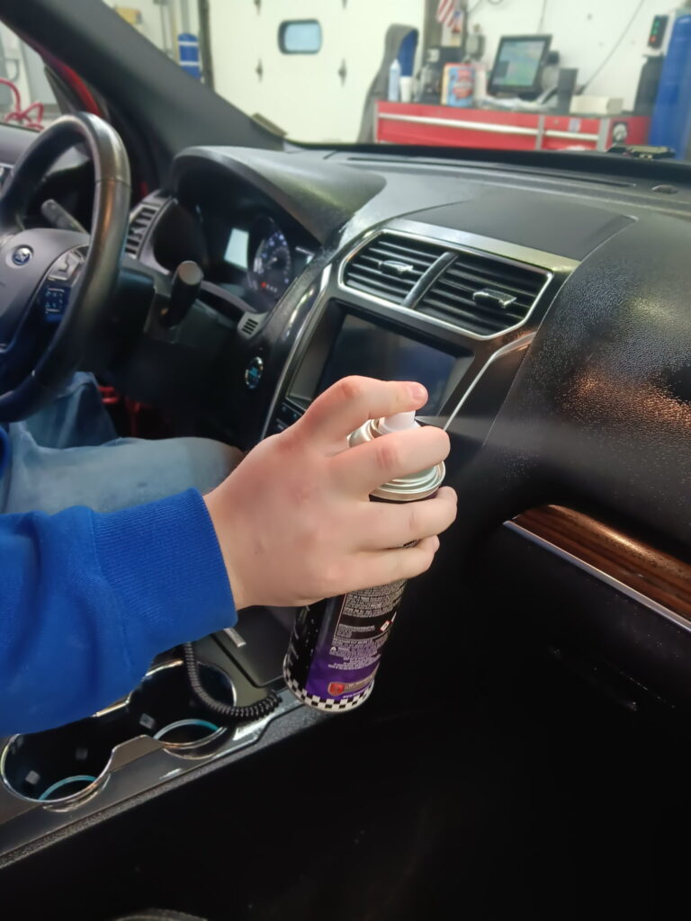 Adds: Front doors, sides of front seats and front kick panels cleaned and treated